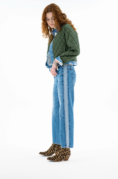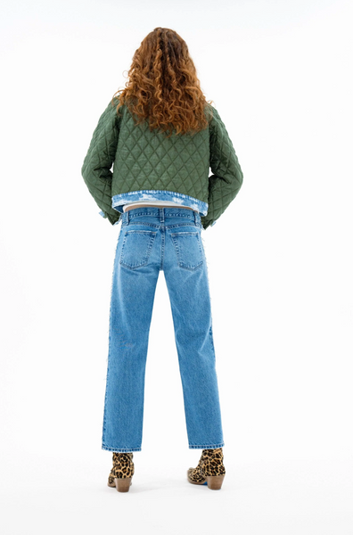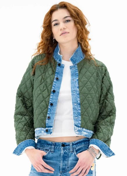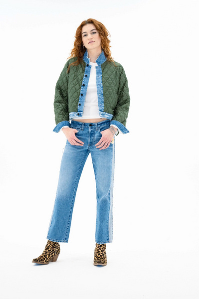 A layering piece that does the heavy lifting. The Bleeker Street Liner is a cropped quilted jacket with subtle volume, contrast binding, and denim details at the hem and cuffs. Lightweight but warm enough to wear solo on crisp days—or layered under a coat when temps drop.