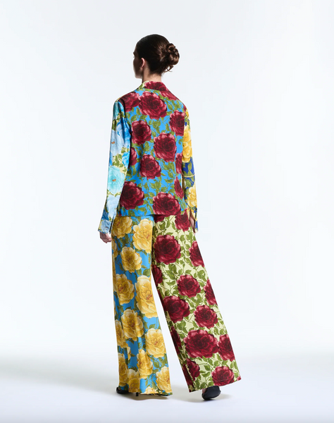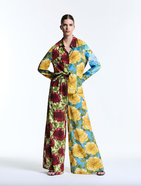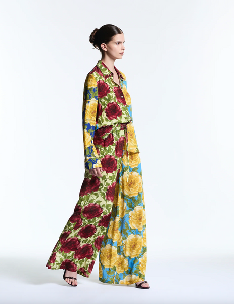 Set on a silky blend for visual elegance and tactile luxury, the Wide Leg pants are inspired by the garden that grows beneath us and lifts us up. The cut showcases a luxurious drape, allowing the fabric to flow and move gracefully with the body enhancing the fluidity and comfort of the design much like a skirt. With a waistband designed for versatility, it brings comfort, but always in style. These pants are semi-sheer, adding to the casual aesthetic of the look, perfect for warm climates or layering in transitional seasons.