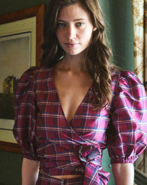 Scarlett Wrap Top in Berry Tartan