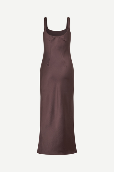 Bias-cut satin maxi dress with a slim fit. Slit at the side. Main material made from 100% recycled polyester.