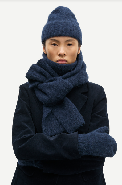 Knitted beanie. Rib-knitted brim. Brushed look. Main material made from an elastic blend including alpaca wool.