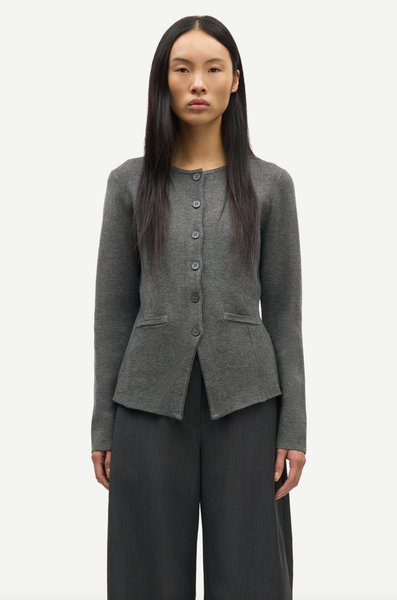 Double-faced jacket with a slim fit. Button closure on the front. Flap pockets on the front. Crewneck. Main material made from an elastic blend of LENZING™ ECOVERO™ Viscose. This product contains LENZING™ ECOVERO™ Viscose, certified with the EU Ecolabel for textile products for environmental excellence.