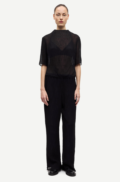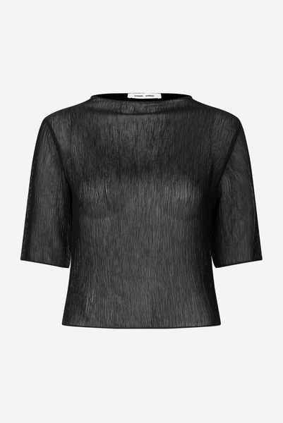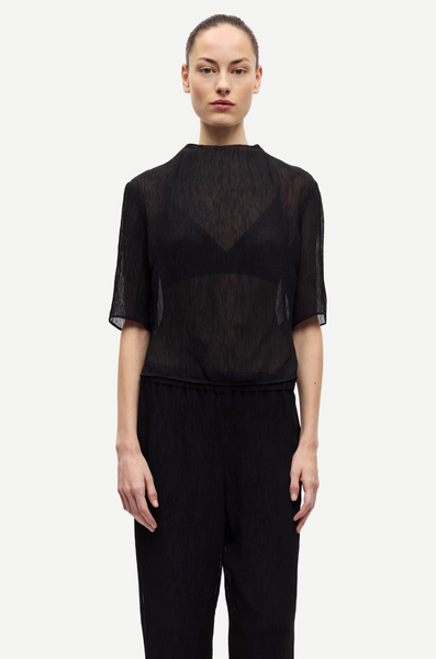 Short-sleeved semi-sheer top with a regular fit. High neck. Main material made from 100% recycled viscose.